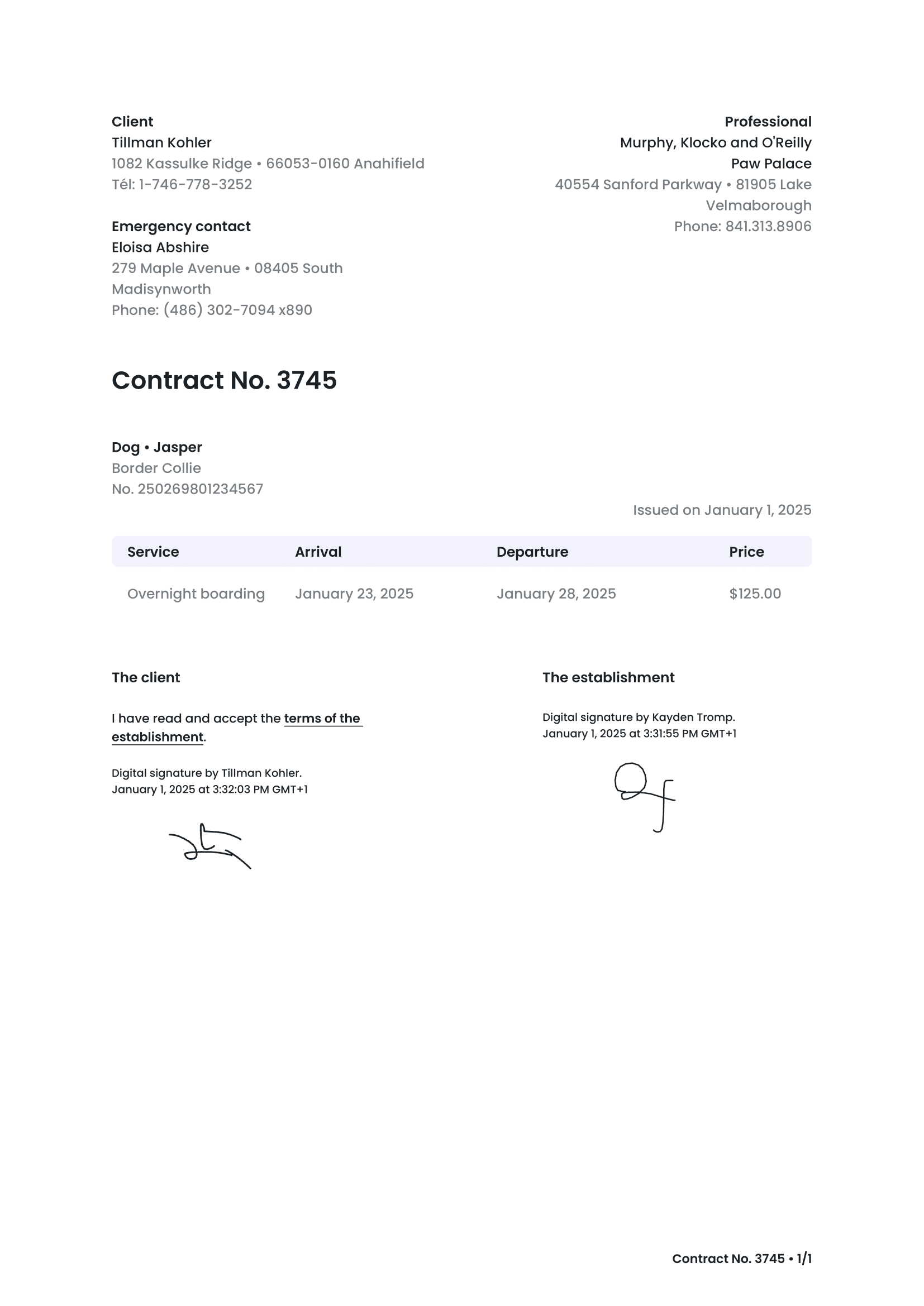 IzyPet makes it easy to generate personalized reservation contracts for every stay.